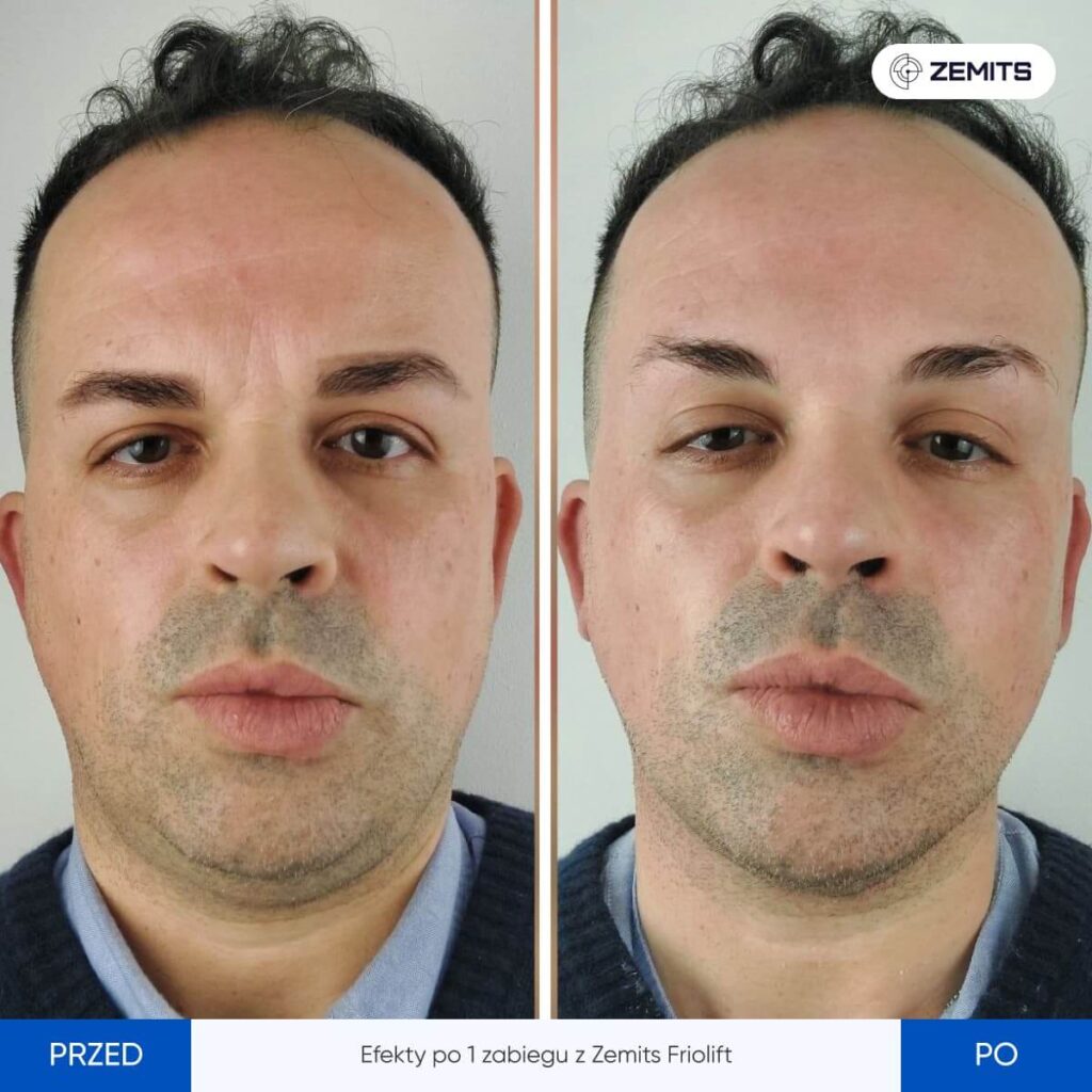 Terapia niskimi temperaturami stymuluje lipolizę, pomaga napinać skórę, podczas gdy lifting RF wspomaga stymulację kolagenu i napina skórę, co prowadzi do widocznej poprawy konturu podbródka.